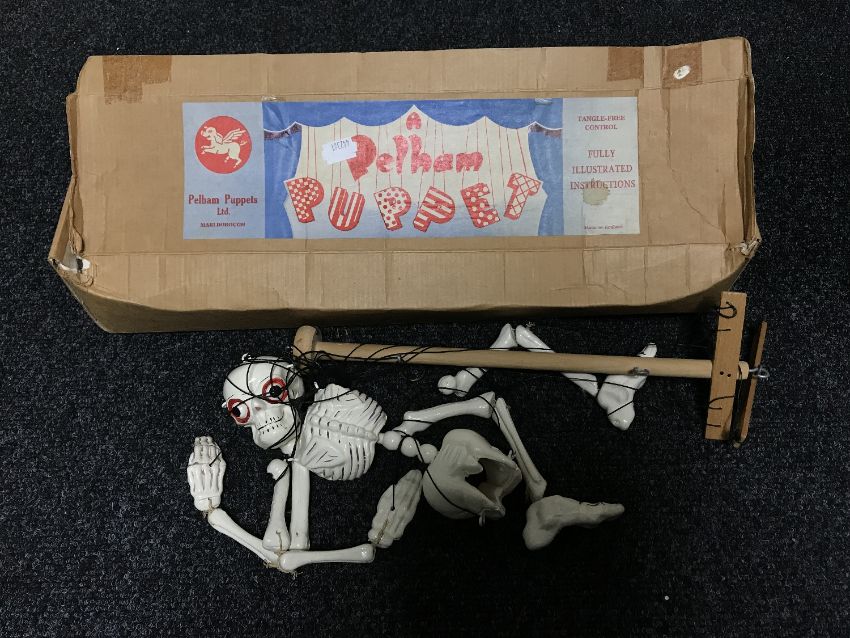 A boxed Pelham puppet - Skeleton