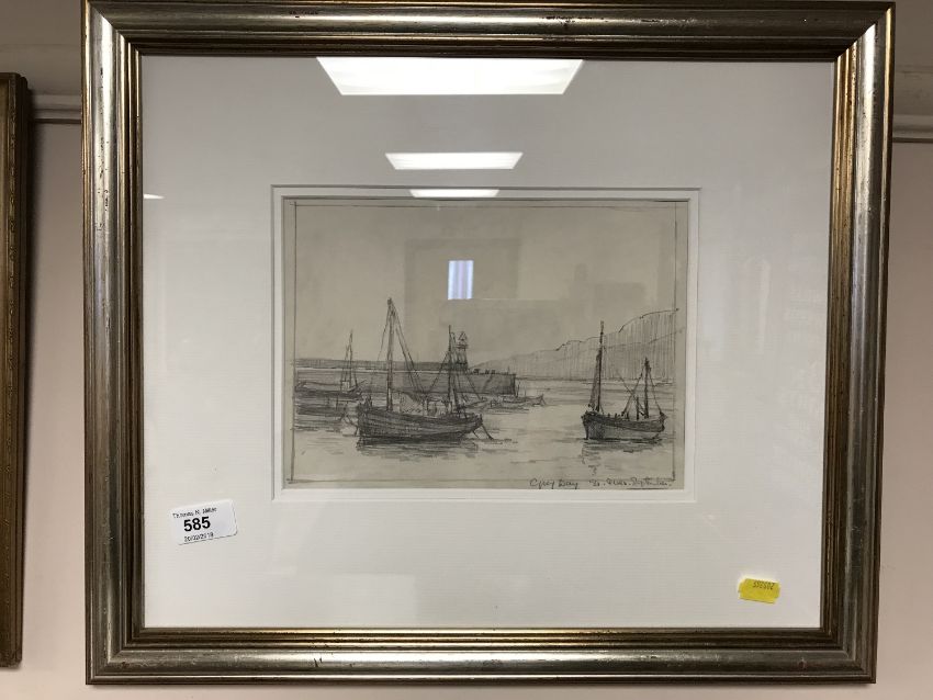 Mary Williams : Grey day St Ives September, graphite, 18 cm x 24 cm, framed.