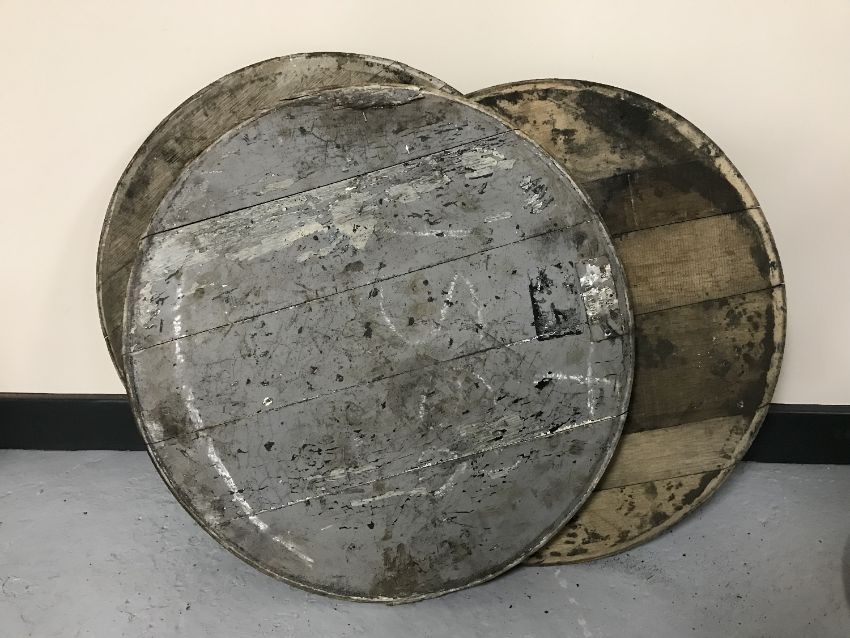 Seven whiskey barrel lids