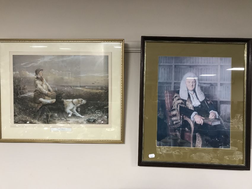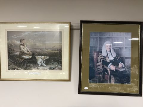 Two signed limited edition Bob Farndon prints - Court room scenes, together with two framed Judge prints and a gilt framed print - First of September