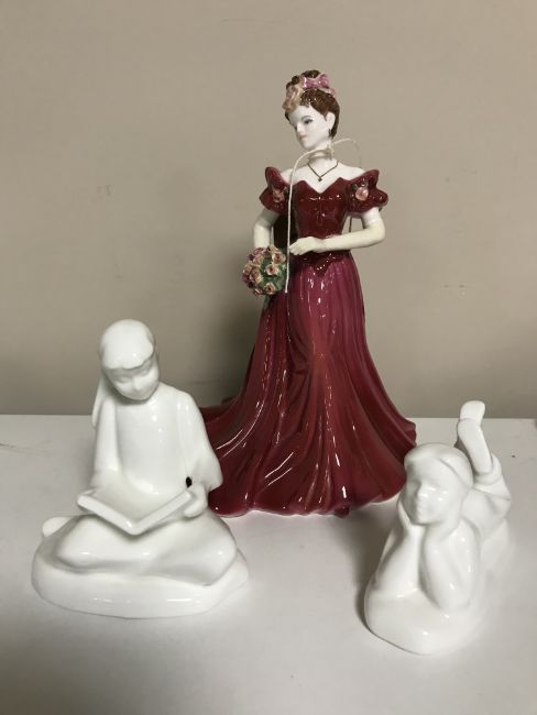 A Coalport Lady's of Fashion figurine - Jenny, together with two Doulton Images figures - Storytime boy and Storytime girl