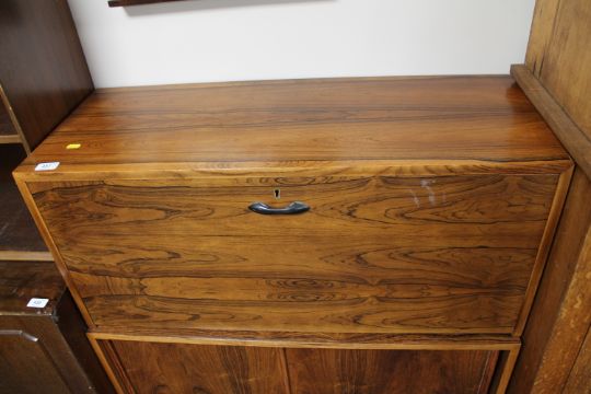 A 1970's rosewood sliding door cupboard and a cocktail cupboard