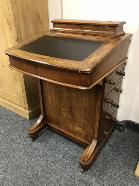 A late Victorian inlaid walnut Davenport, width 53 cm