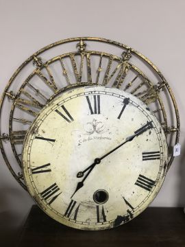 A French cafe wall clock together with a circular gilt metal wall clock (2)