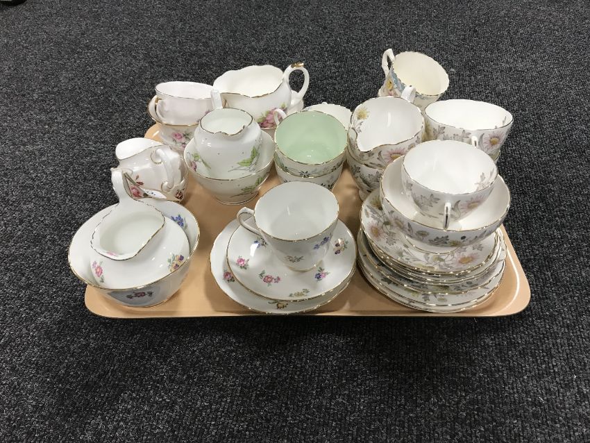 A tray of part Somerset New Chelsea and Dorchester tea china, Royal Crown Derby Derby posies sugar basin and milk jug