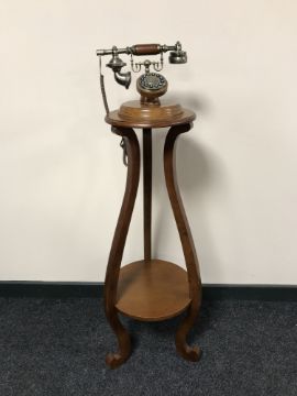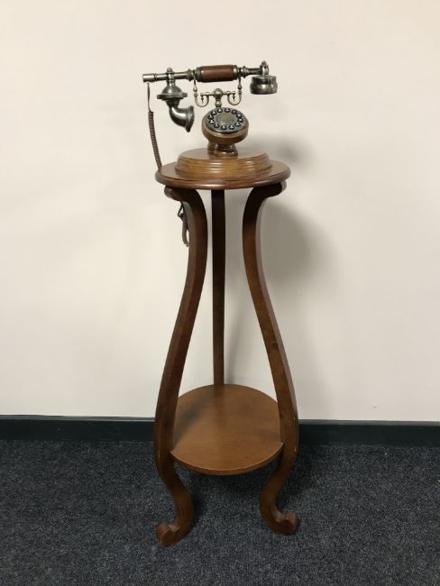 A vintage style telephone on two tier circular table