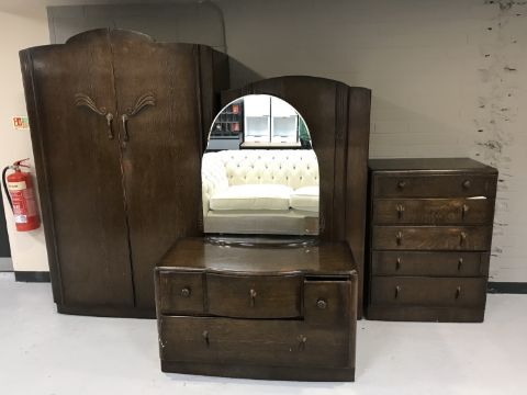 A mid 20th century oak four piece bedroom suite