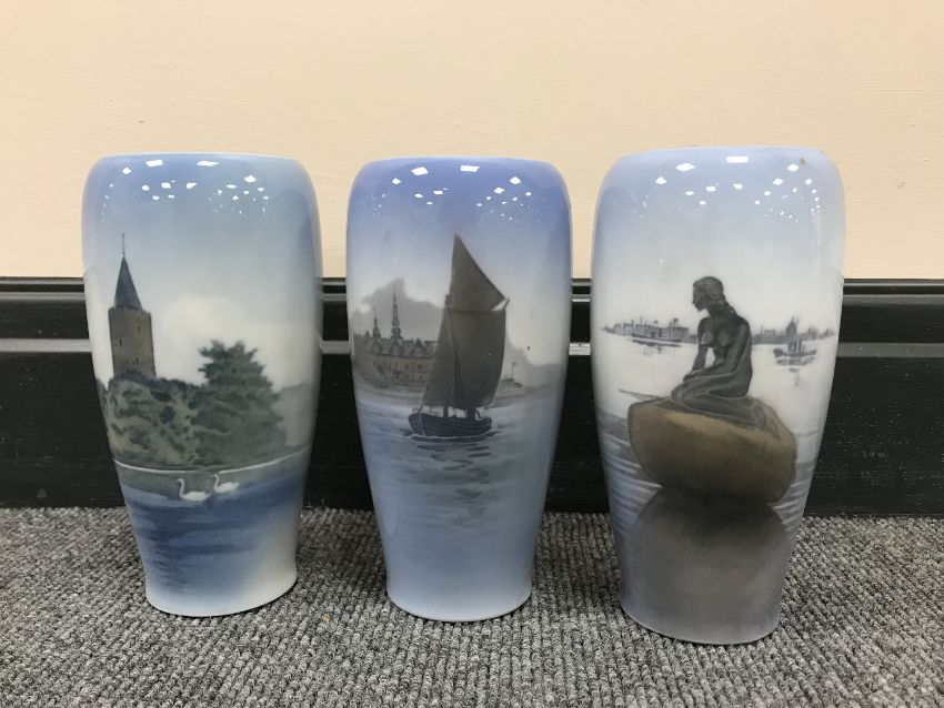 Three Royal Copenhagen vases, height 17 cm