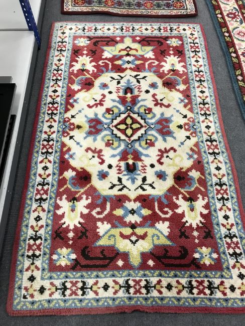 A woollen Eastern style rug on red ground