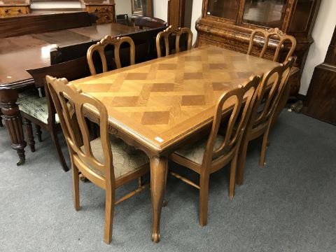A French oak country dining table 90.5 cm x 160.5 cm, together with six matching chairs. (7)