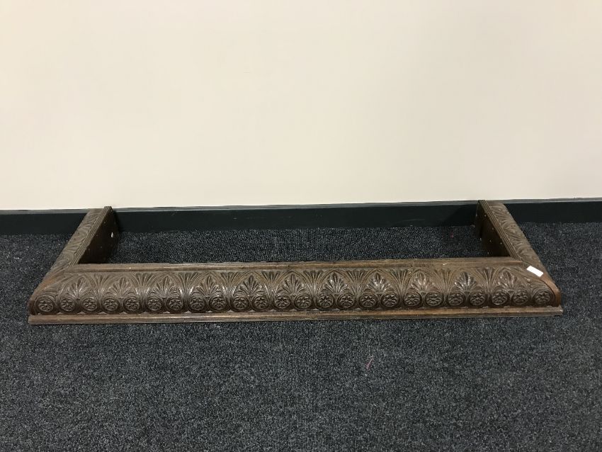 An early 20th century heavily carved oak fire curb