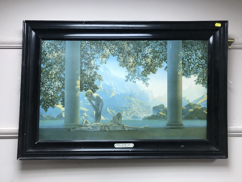 After Maxfield Parrish : Day break, colour print, framed.