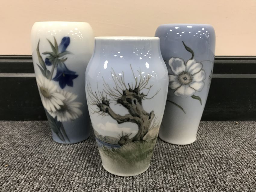 Three Royal Copenhagen vases, largest 17cm