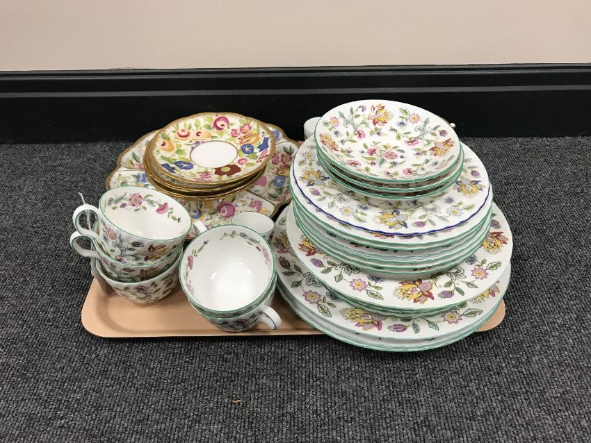 A tray containing nine pieces of gilded Hammersley floral china together with twenty-eight pieces of Minton Haddon Hall china