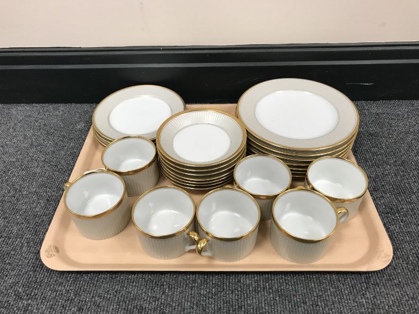 A tray containing twenty-five pieces of Fitz & Floyd Classique d'Argent tea china