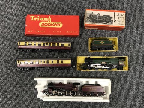A box of boxed Triang Railways locomotives inc. Princess Elizabeth, carriages and boxed points