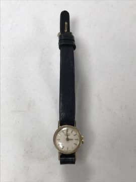 A lady's 9ct gold Longines watch on leather strap