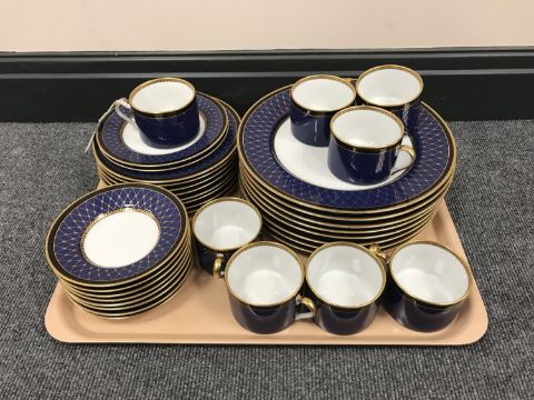 A tray containing thirty-four pieces of Fitz & Floyd Chaumont tea china