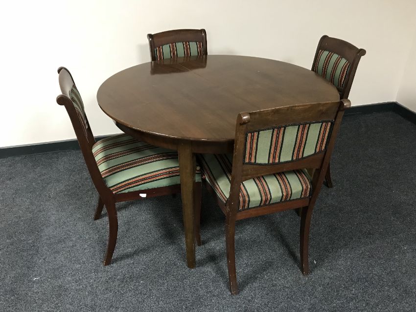 A reproduction circular dining table and four chairs