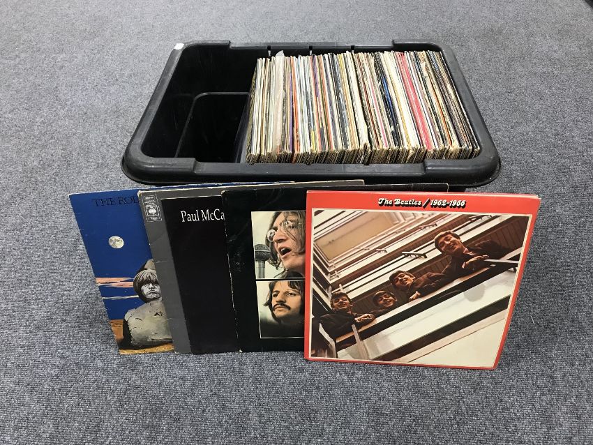 A box of approximately 100 assorted LP's and double albums including The Beatles, 80's including The Smiths, U2 etc