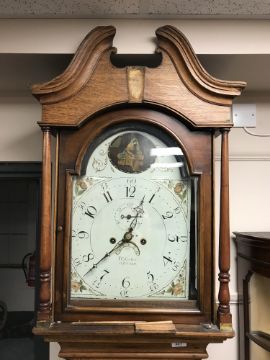 An early 19th century oak longcase clock with painted dial, Thomas Corker of Stafford with pendulum and weights