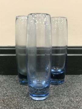 Three Holmegaard Per Lutken blue glass cylindrical vases, height 22 cm.