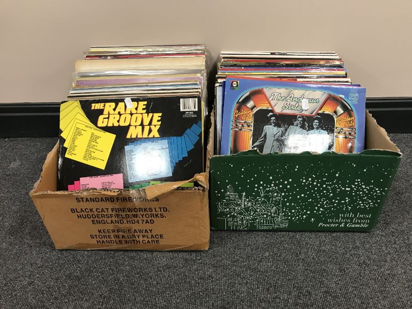 Two boxes of LP's; compilations, 80's, soundtracks, Now compilations etc