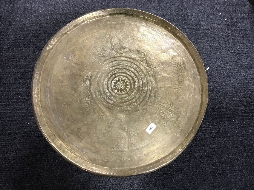 A folding brass-topped table