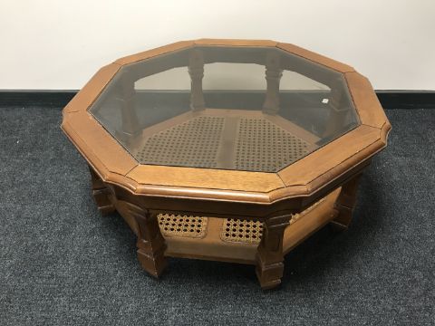 An octagonal two tier coffee table