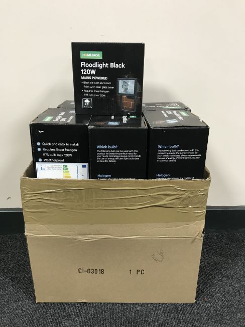 A box of sixteen 120W mains powered floodlights