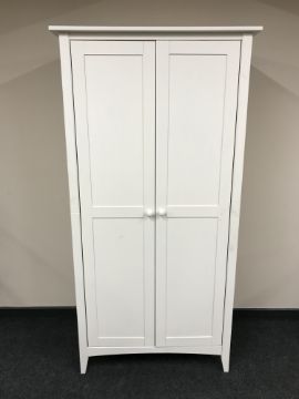 A painted pine double door wardrobe together with a painted pine five drawer chest
