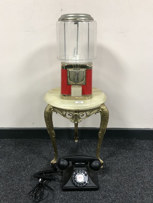 A late twentieth century sweet dispenser together with a gilt and onyx plant table and retro style telephone