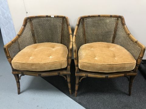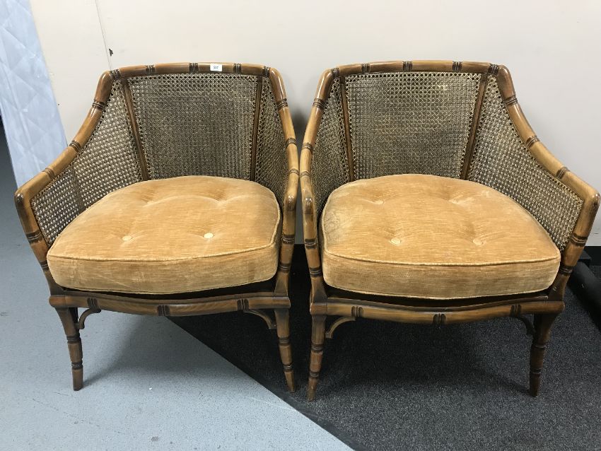 A pair of contemporary bergere backed tub chairs