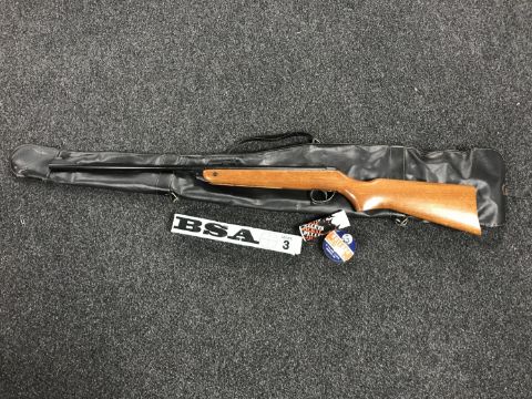 A BSA Meteor .22 air rifle in carry bag together with BSA mark III telescope 14 x 15, and two small containers of pellets