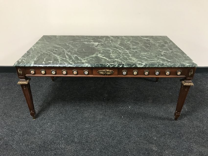 A French style marble topped coffee table with ormolu mounts