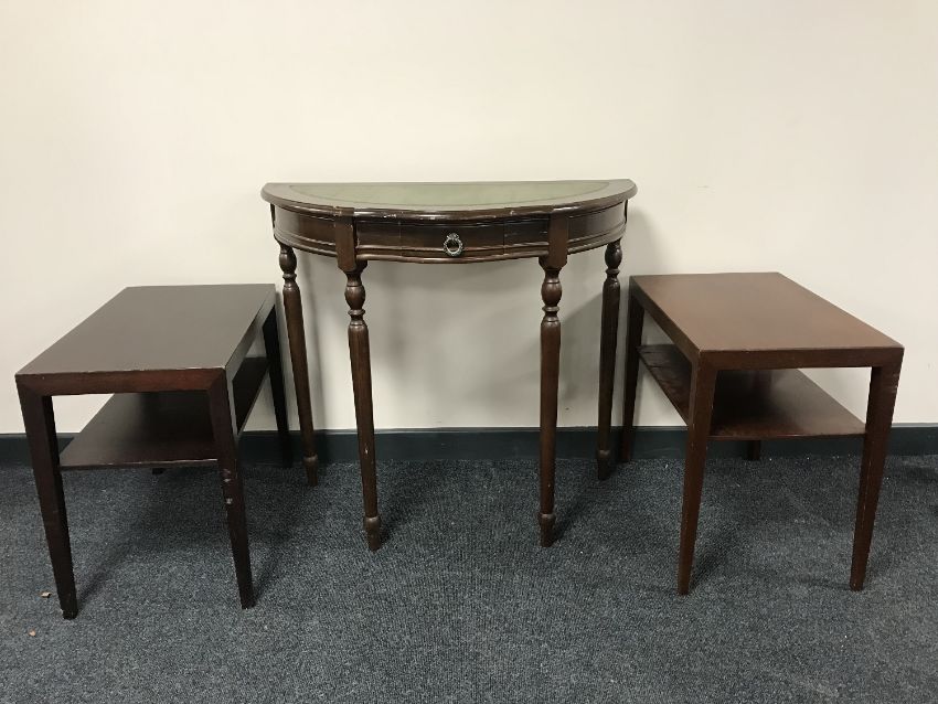 A d-shaped hall table and a two Danish mahogany side tables