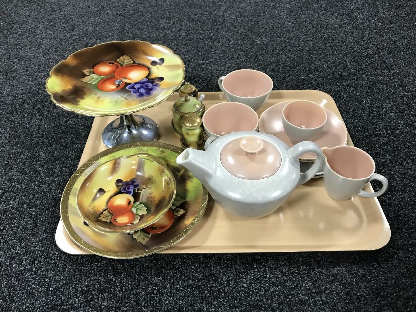 A tray of nine piece Poole pottery tea for two together with four pieces of gilded hand painted china