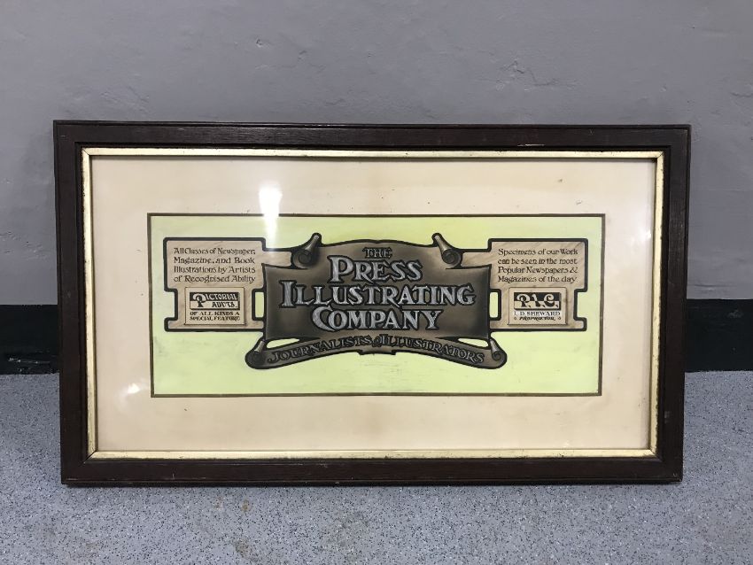 An oak framed -Press illustrating company journalist and illustrators advertising sign