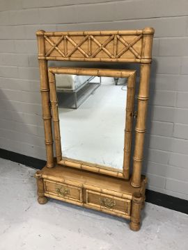 A bamboo framed dressing table mirror fitted with two drawers