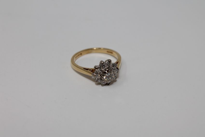 An 18ct gold diamond cluster ring, size I