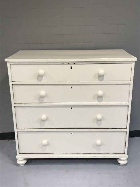 An antique painted pine four drawer chest