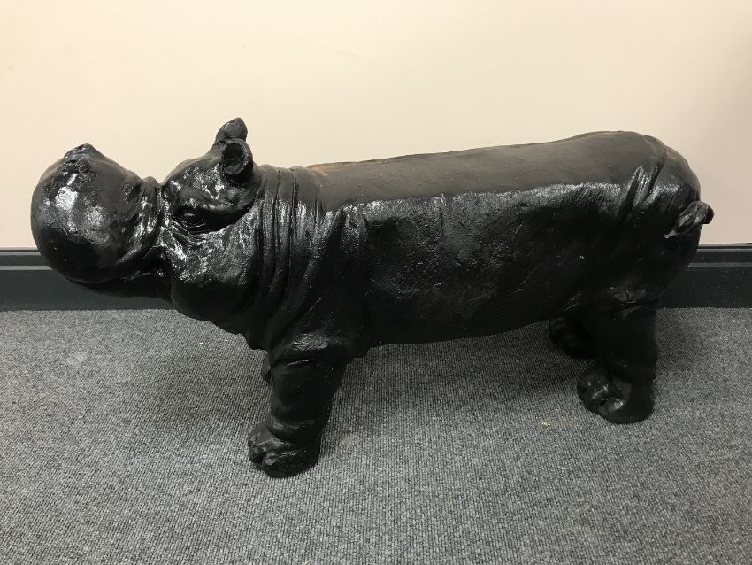 A pottery garden figure of a hippo