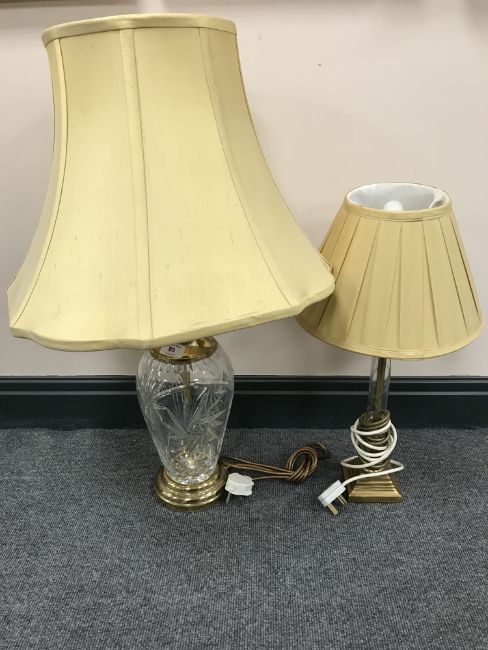 Two cut glass table lamps with shades