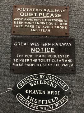 Three cast metal plaques - railways