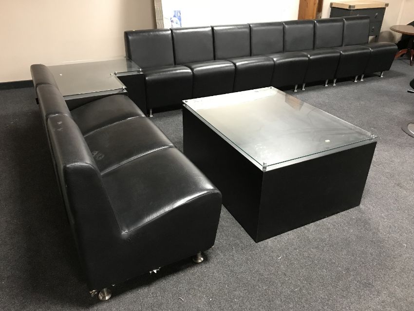 A twelve piece corner reception suite - ten chairs and two coffee tables