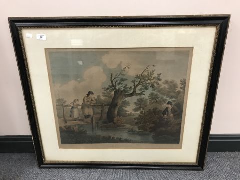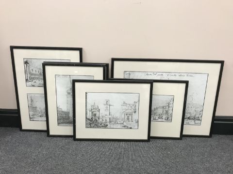 Six framed prints of Venice and an etching after George Morland "Summer Amusement"