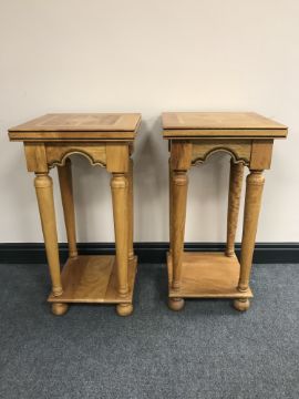 A pair of contemporary two tier plant tables