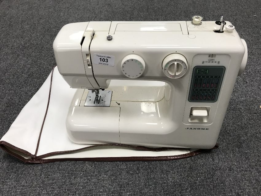 A Janome sewing machine in case and a boxed Quartz wall clock