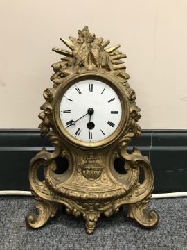 An early 20th century French gilt mantel clock with enamelled dial