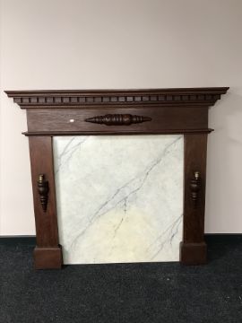 An oak fire surround with marble back